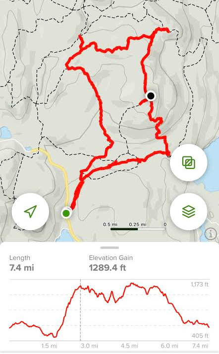 7.4 miles | 1,289 ft gain | Difficulty: Moderate | Rating ★★★★★