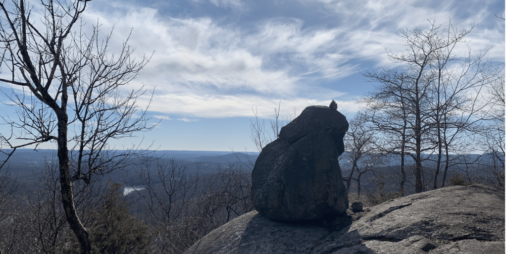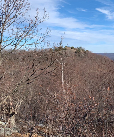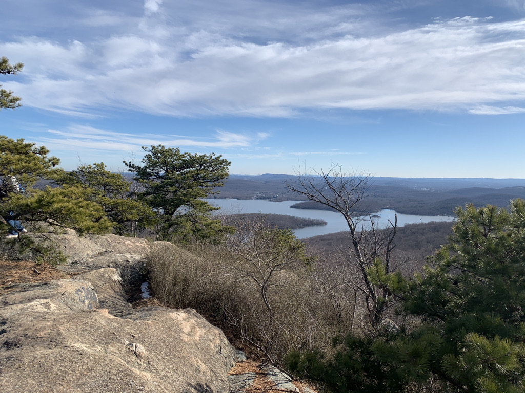 From Chikahoki Falls, we traveled up, up, up to Carris Hill for some of our first views. We then followed the blue Hewitt Butler Trail, hugged the cliffside for a bit getting better and better views of the reservoir until we reached Yoo-Hoo point. From there we could see our next destination, Wyanokie High Point, across the woods.
