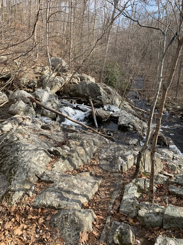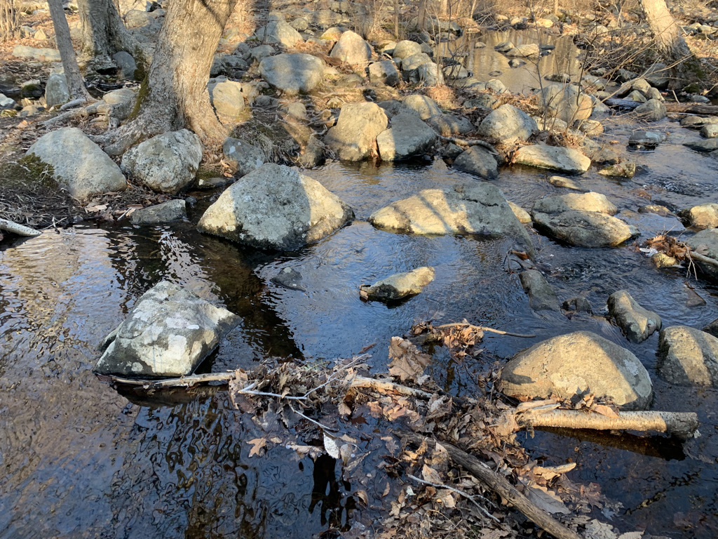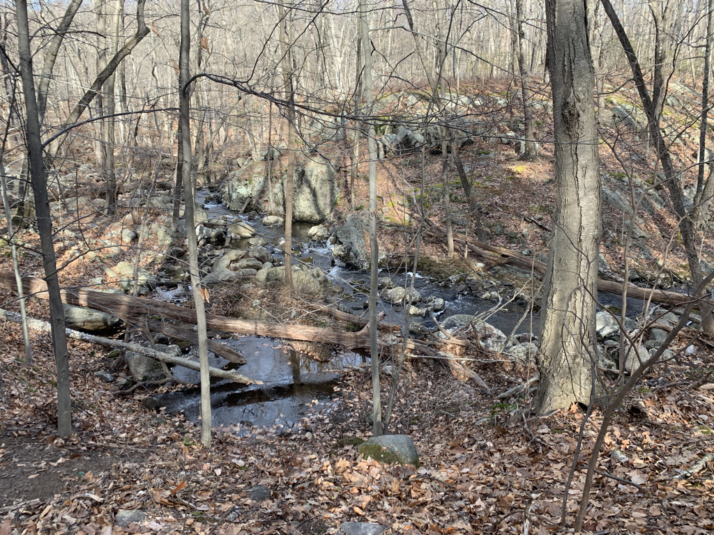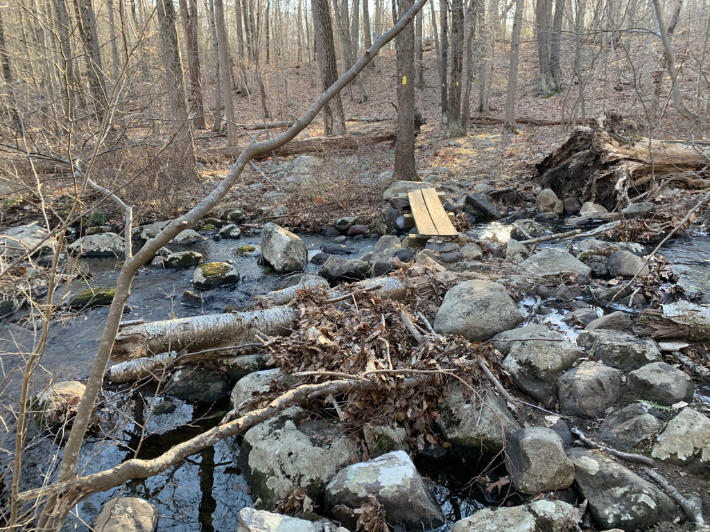 We somehow missed the brook. We were on one side of Post Brook, while our trail and destination on the other. Normally, I’m all for a stream crossing. Rock hop, wade through, whatever it takes. But it’s January. And the 1-2 foot deep body of water was frigid. And any obvious path of rocks was specked with visible ice. I felt like a dog, pacing back and forth on the shoreline trying to figure the safest way to cross. Falling into the water wouldn’t necessarily mean injury but it would guarantee the end of our hike.