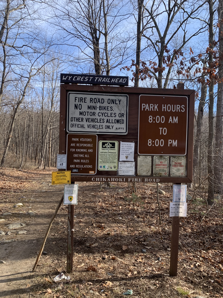 My husband and I have naturally fallen into our hiking roles. I lead and set the pace, he navigates, announcing turns, trail changes and when/if we’ve veered off track. It usually works out, with occasional missteps, so when he announced that we weren’t on trail, but running parallel and would still meet our intended path shortly, I wasn’t concerned. Had we prepared better, we would have read the New York-New Jersey Trail Conference description, warning us to make an immediate left on the yellow blazed Wyanokie Crest Trail instead of walking the wide fire road. But we were about a mile in and I didn’t really feel like back tracking all that way.