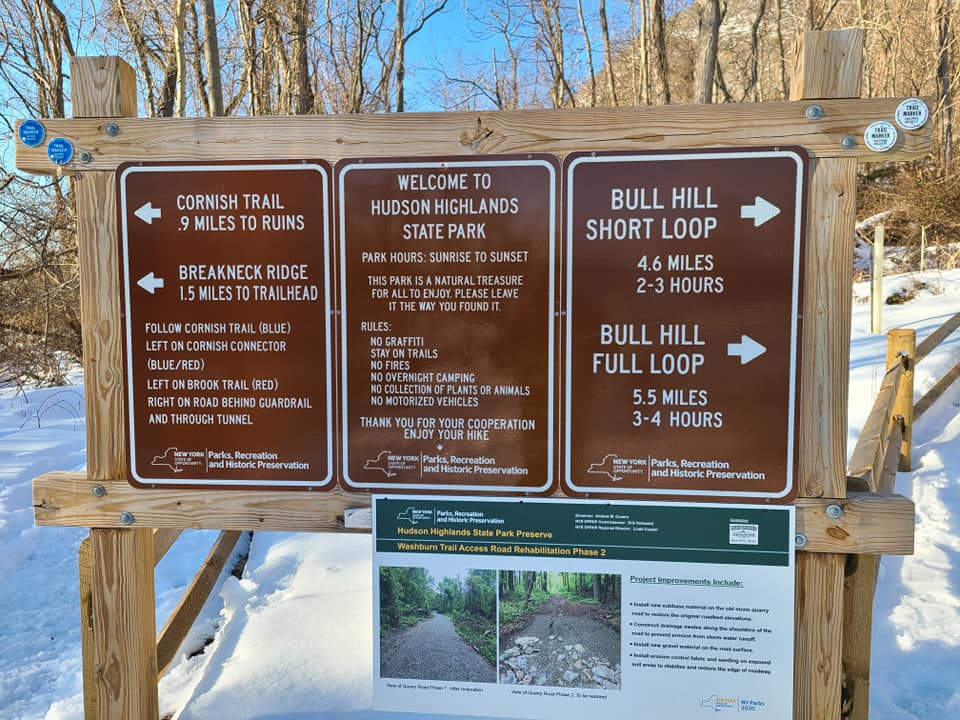 When we turned inland, I was a bit surprised. I studied the map before, but in my head, I thought Bull Hill was another mountain towering over the east side of the Hudson, like Breakneck Ridge. We opted for the long loop because, why stop now? We steeply continued to climb up the well packed trail, with a few icy rock scrambles.