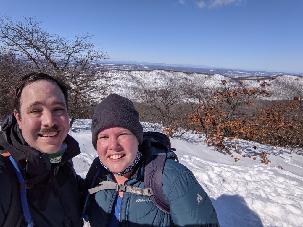 Hiking on snow is fascinating to me. On trail, it felt similar to a well packed dirt and felt like it was only an inch or two between us and the bare trail. But step outside the well traveled track and I sunk almost knee deep. One of my favorite contrasts is the selfie of Sean and I at Nye’s summit in the Adirondacks during the fall, our heads clearly below the trail sign. Then there’s the one of my Instagram friend @koh_outside and his buddy hugging the nameplate the previous March, standing on at least 5 feet of packed Adirondack snow. So yeah, it can be deceiving.