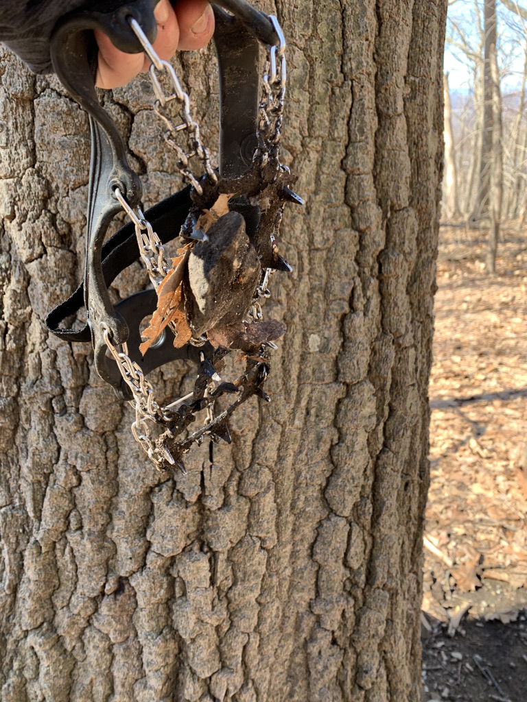 While the summit of Storm King lacked a clear view, just a little ways past we looked north up the Hudson with beautiful views of Pollepel Island and Bannerman Castle’s ruins. It wasn’t until we dropped back down into the woods and curved towards the north side of the mountain that we understood the need for spikes.