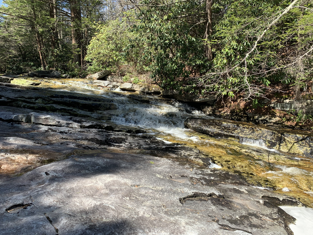 After a nice break we continued on the Rainbow Falls path, climbing up again to the cliffs, then along the rock ridges for a while. Finally returning to a carriage road. The remaining 2 miles back to the lot were relatively unremarkable. Definitely a trail to take advantage of in the Spring. I imagine summer will mean a dryer kill and falls.