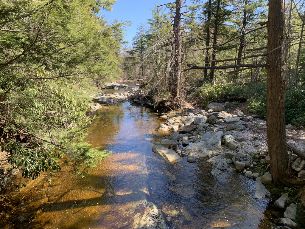 We started at the parking lot, often overflowing on weekends, but only had a few cars at 10:30am on a Thursday. Starting on the carriage road, we soon turned left onto the Mossy Glen footpath. For the next mile or so we traveled alongside and across Peter’s Kill, eventually making a sharp left and climbing steeply up the Blueberry trail to a wide footpath.