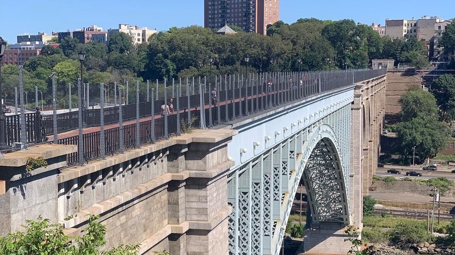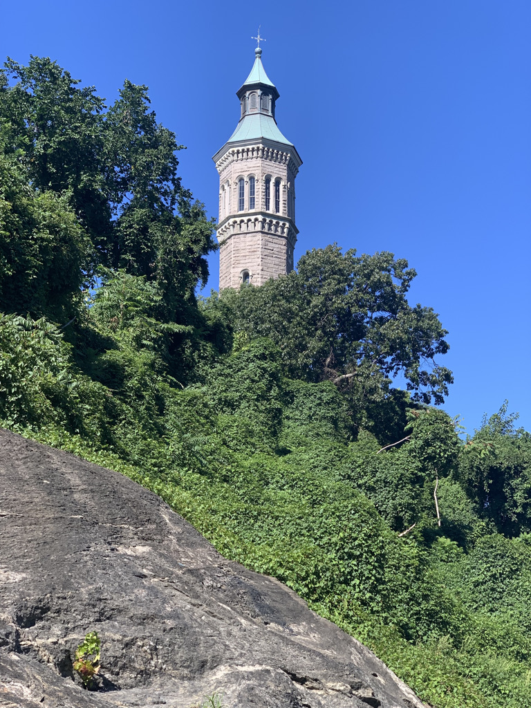 At 154th street, we zigzagged east a little towards the Harlem River. Our destination was the High Bridge, but we were pleasantly surprised to find a dirt trail at 158th, taking us off the city streets and into the woods. We broke from the woods onto some rocks to take in views of the river before darting back into the shade and eventually to a multi-use trail that took us to the bridge. Once a reservoir on the west side of the river by the gate house, it was now converted to a pool for all to enjoy.