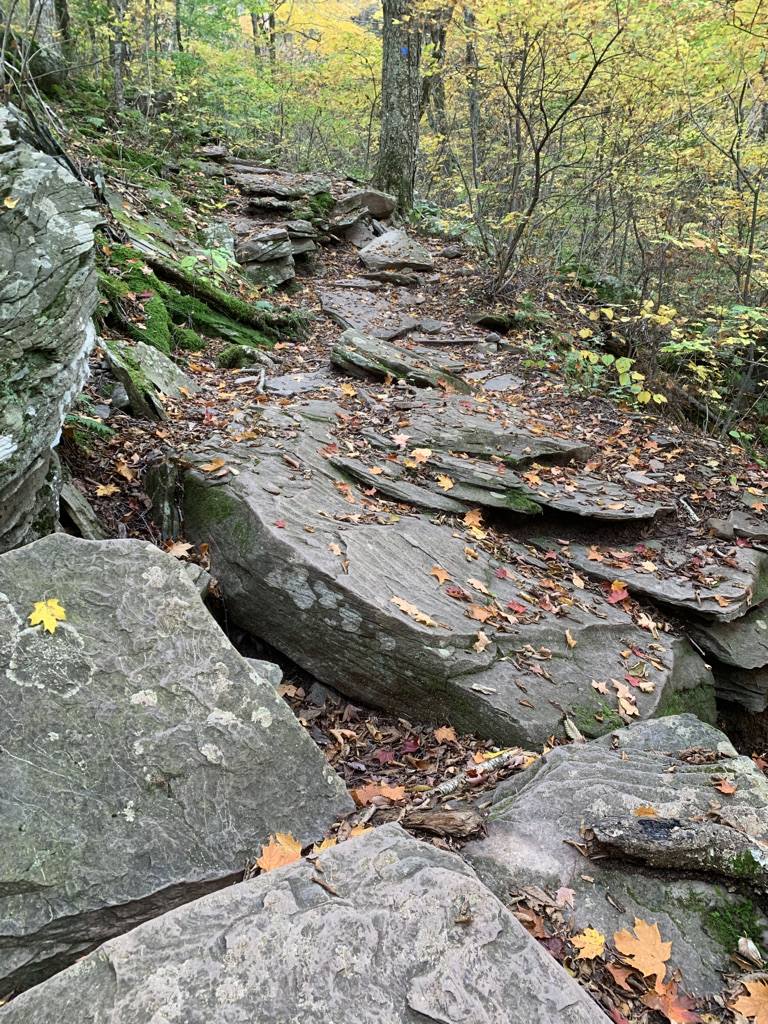 The Jimmy Dolan trail boasted about 1000 feet of elevation gain, but from its gradual increase through a wide forest, you would never know. There were roots and rocks to navigate, but that’s to be expected. It was only after we turned around a bend with about .3 miles left to the Notch that we hit a steep bit, bringing us up some small rock scrambles fast.