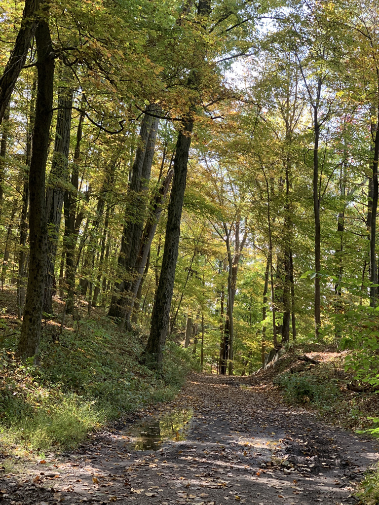 We started from the Mansion, along a paved road for the first mile, before turning right towards the river and then into the woods. Here we found ourselves on a lovely carriage road, weaving along the train tracks with occasional peeks towards the river. At one point, the fence was cut open, begging us to climb up and take a closer look.