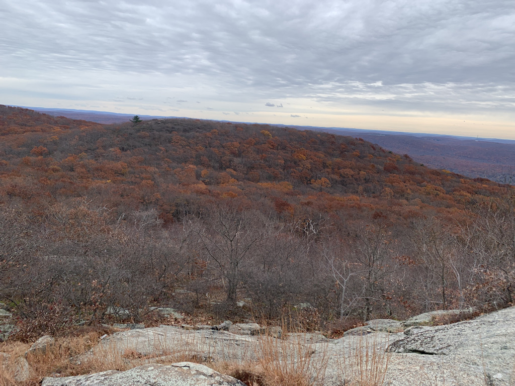 We squeezed in the last of the Hudson Valley’s foliage colors last weekend hiking Mount Beacon. The colors were a bit muted due to the grey skies, but still a fantastic day for a hike. Beacon is a mountain I love being on top of but hate to climb. The first mile is grueling – 1000 feet in a mile via stairs and steep, uninteresting switchbacks. The second mile, much less demanding as you wander along the ridge to the fire tower.
