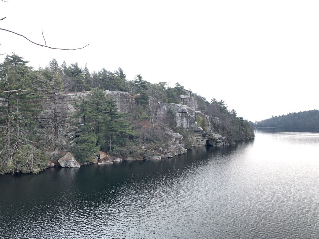 Starting from the brand-spanking-new visitor’s center, we headed south on the Lake Minnewaska Carriage trail. We slowly ascended on the wide road speckled with puddles and ice.