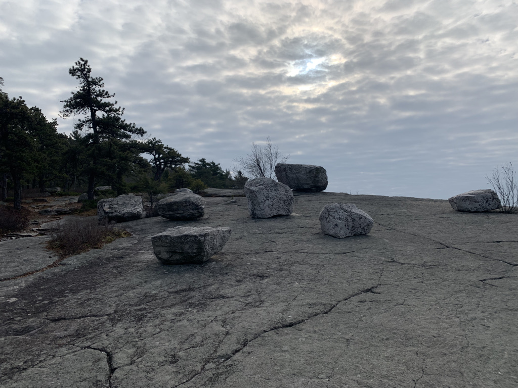 Continuing on the carriage road, we finally dropped down (down!) into the woods about 2 miles into our hike on the Gertrude’s Nose trail. After a quick descent, we came to the edge of the cliffs along the valley where we continued along the cliffs, jumping in and out of the woods until we reached Gertrude’s Nose at about 3 miles.